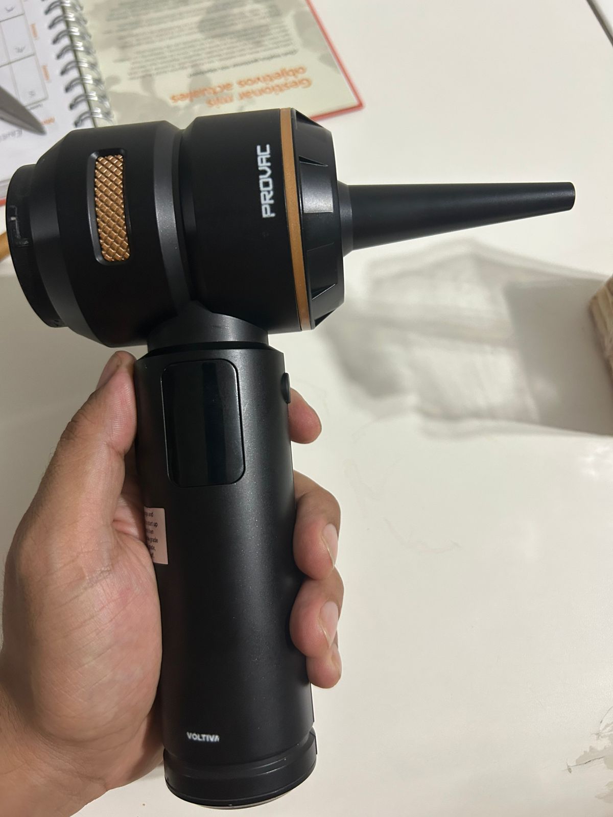 Incluye linterna y pantalla digital.