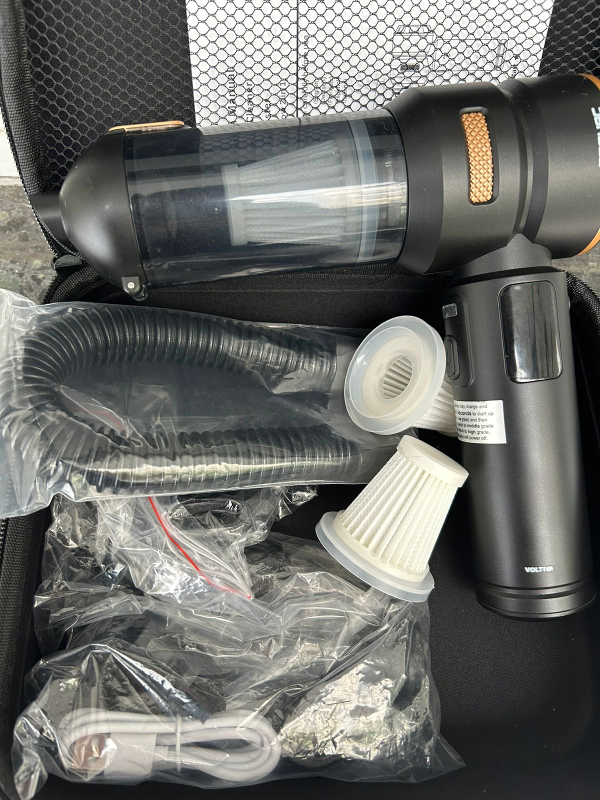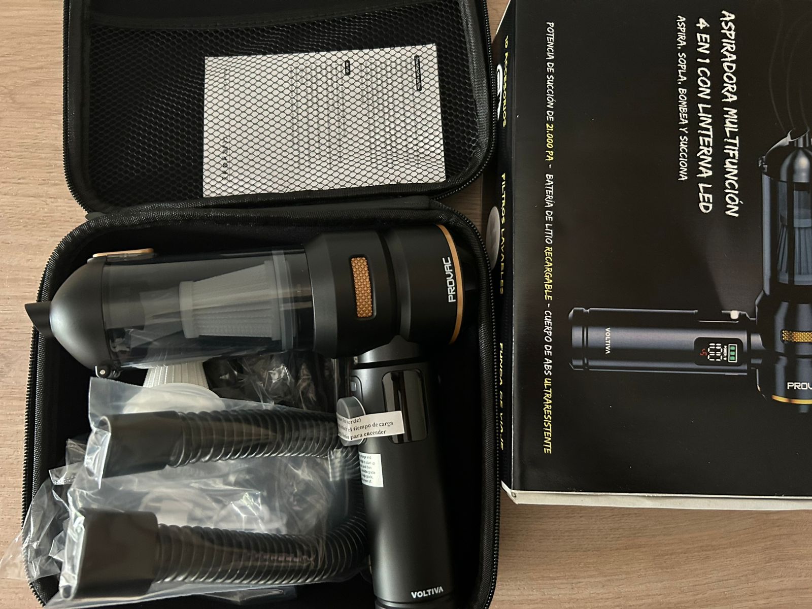 Muy buena succión incluso en alfombras del auto.